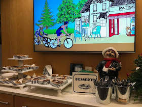 There were also guests in the Provence BAKERY. See the black and white striped pie boxes. I adjusted my boat box down to make these. It made serving the pie "easy peezy".